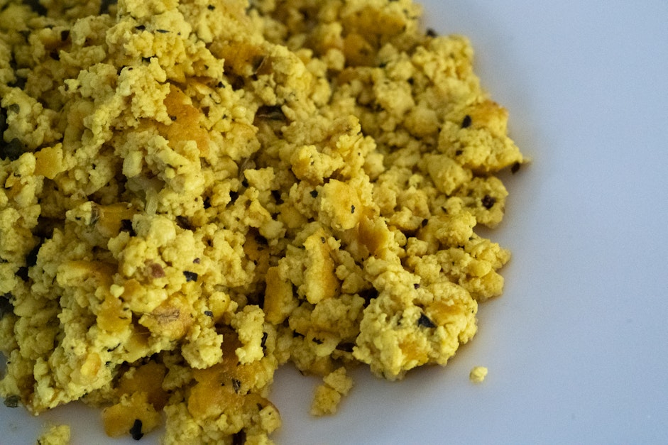 - Prak de harde tofu met de vork. (Haal hiervoor tijdelijk van de weegschaal af.)
